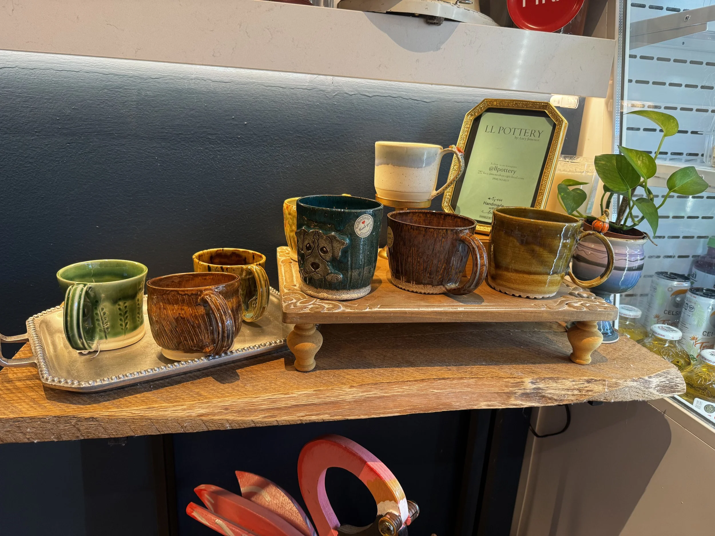 Variety of handmade coffee cups by LL Pottery, a local Orlando maker.